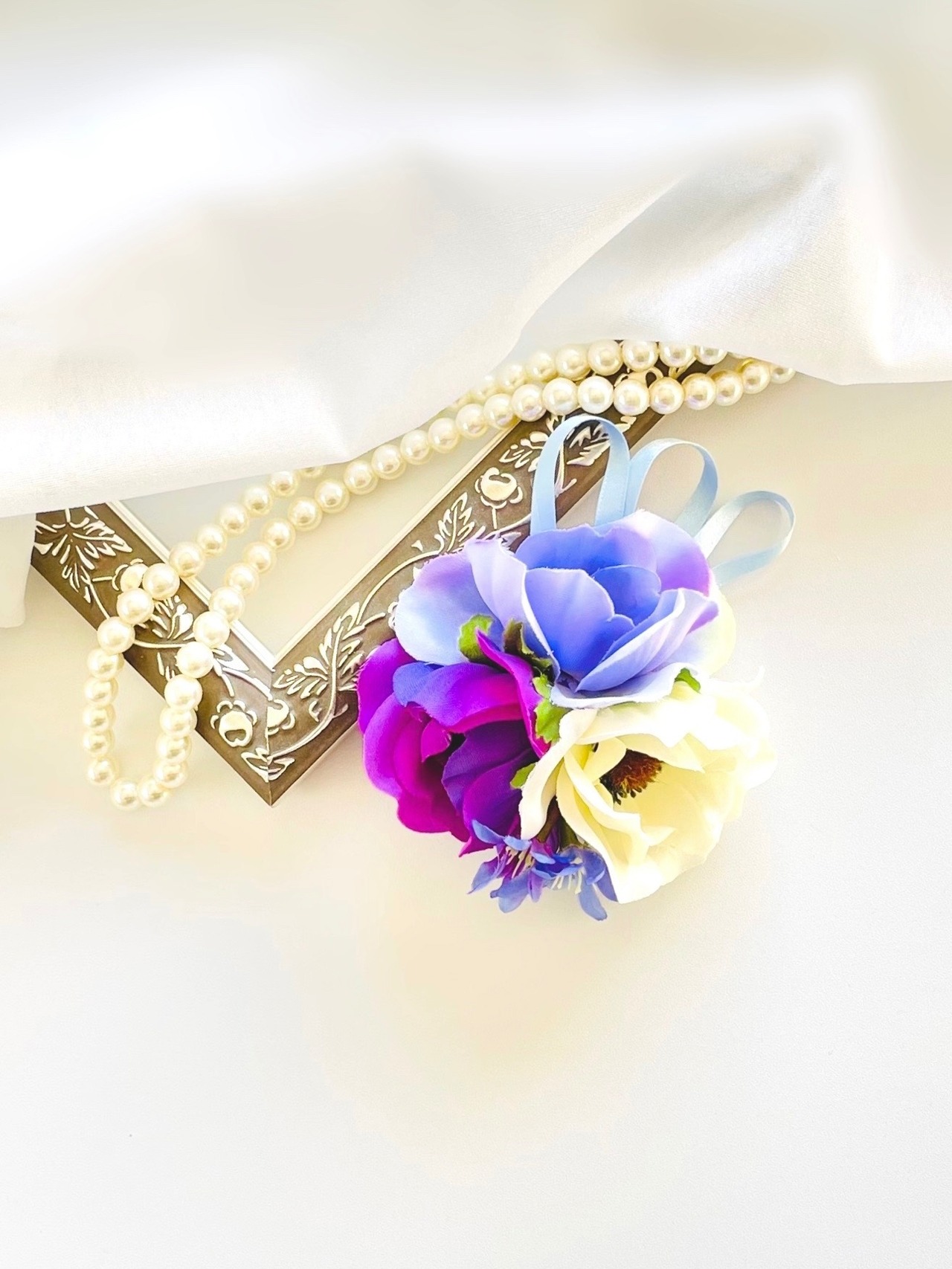 コサージュ 卒園式 卒業式 入園式 入学式 2次会 パーティ お祝い おしゃれ 可愛い 上品 華やか 人気 造花 花 アネモネ スーツ ドレス パステルカラー パープル ブルー 春 ピン 2way