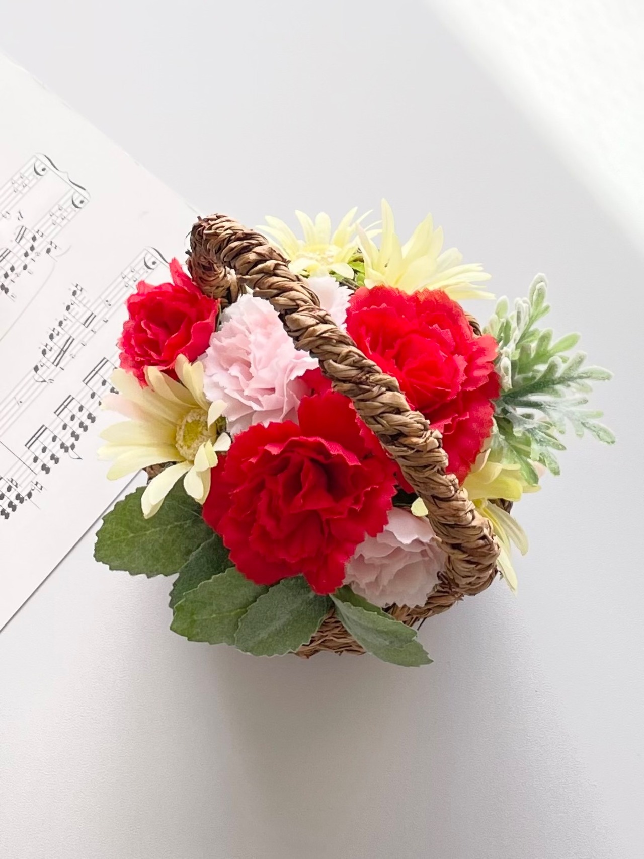 【お値下げ】母の日 ギフト プチギフト プレゼント おしゃれ 長持ち 飾る 可愛い 上品 人気 インテリア雑貨 感謝の気持ち ありがとう バスケットアレンジ カゴ 赤 花 カーネーション 造花 記念日 お祝い | giftsoleil